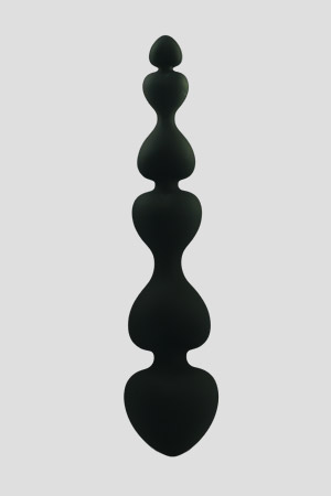 Catena anale graduata composta da sei nodi di dimensioni crescenti. La pallina più piccola misura 1cm fino ad arrivare a 3,2cm la più grande. Potete partire dalla più piccola ed inserire via via le altre fino a raggiungere la pallina più grande, oppure inserite subito quella di dimensioni maggiori e utilizzate le altre come cordicella di recupero.