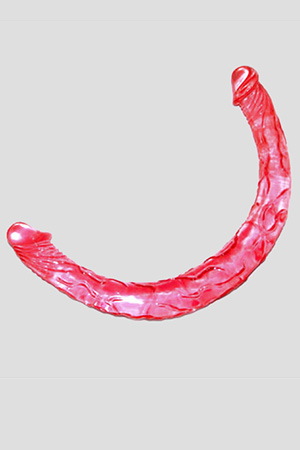 Fallo doppio con due teste. Realizzato in morbida gomma è altamente snodabile e può essere utilizzato anche per penetrazioni selfie vagina/ano.