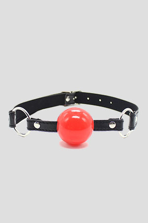 Anelli laterali in metallo. Cinghie in similpelle. Diametro pallina: 4cm. Fibbie in metallo. Fibbie regolabili. Larghezza cinghia: 2cm. Pallina in gomma rossa. Materiale: Gomma.