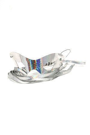 Maschera color argento con frustino abbinato.