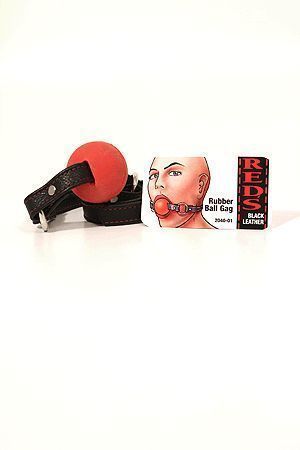 Morso con pallina in morbida gomma rosa. La cinghia è realizzata in robusta pelle nera orlata con filo rosa e borchie in metallo.
