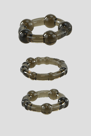 Kit di anelli fallici di diverse misure adatti a tutti i peni. Incredibile elasticità possono essere utilizzati come anello fallico oppure come anello per lo scroto. Si possono combinare tutti gli anelli in base alle vostre necessità. Potete indossarli contemporaneamente tutti e tre, mettendone uno alla base del pene, un altro sullo scroto e un altro sul tronco del pene.