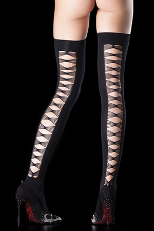 Calze Autoreggenti con intagli a trama intrecciata posteriori.