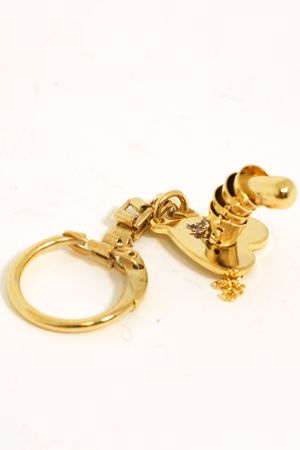 Piccolo portachiavi in metallo dorato con un cuoricino da cui spunta un pene antistress che si muove grazie alla sua forma a "scaglie".