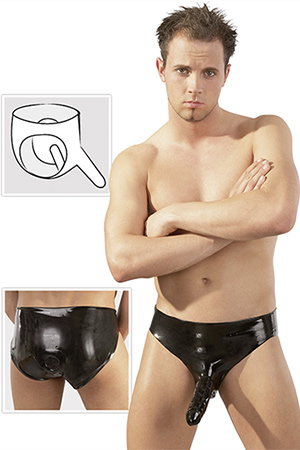 Slip neri in morbido lattice estensibile per una super aderenza dotati fallo anale interno e guaina indossabile esterna.