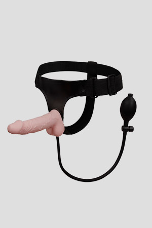Strap-on gonfiabile per chi vuole il massimo! Ha la possibilità di aumentare il suo diametro semplicemente gonfiandolo come se fosse un palloncino. Durate la penetrazione del partner potete premere la pompetta per far aumentare le dimensioni del fallo. Quando diventa troppo grande potete sgonfiarlo semplicemente premendo la valvola di rilascio. Un nuovo gioco per gli amanti dello strap-on.