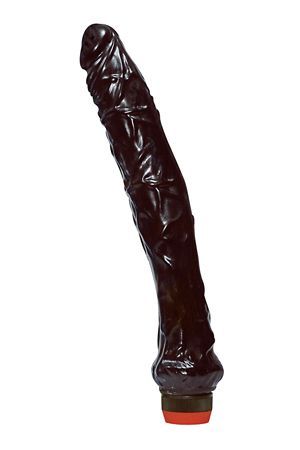 Vibratore maxi nero lievemente incurvato, con venature marcate, glande scolpito e misure da sogno. Flessibile per qualsiasi variante del godimento.