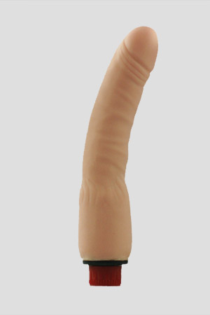 Generoso vibratore venato che grazie alla forma ricurva può essere utilizzato anche per penetrazioni anali.