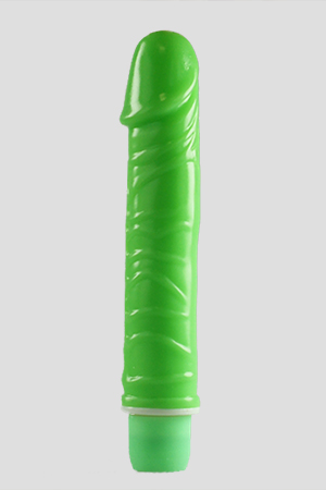 Vibratore realistico realizzato in morbida gomma e di colore al neon.