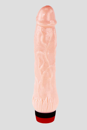 Vibratore realistico affusolato con glande scolpito e scanalature lungo il tronco. Fasci muscolari ben in vista rendono questo articolo molto realistico. La vibrazione è regolabile grazie alla rotellina alla base.
