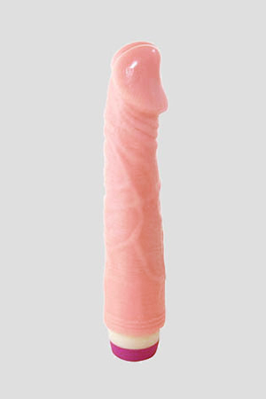 Vibratore realistico con glande scolpito e venature lungo il corpo.